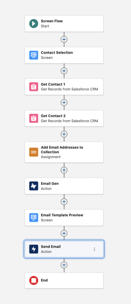 - Integrate AI-generated emails into a Salesforce Screen Flow for user interaction, review, and customization.