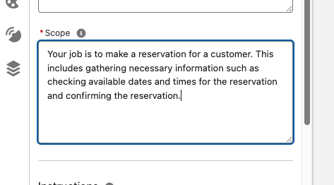 Think of the scope as a specific job description for a topic. Unlike the Topic Label and Classification Description, the scope is not reviewed by the reasoning engine until after the topic has been selected.